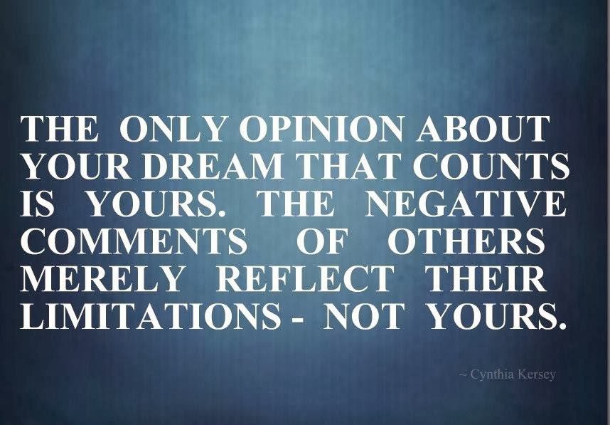 The only opinion about your dream that counts is yours. The negative comments of others merely reflect their limitations. Not yours